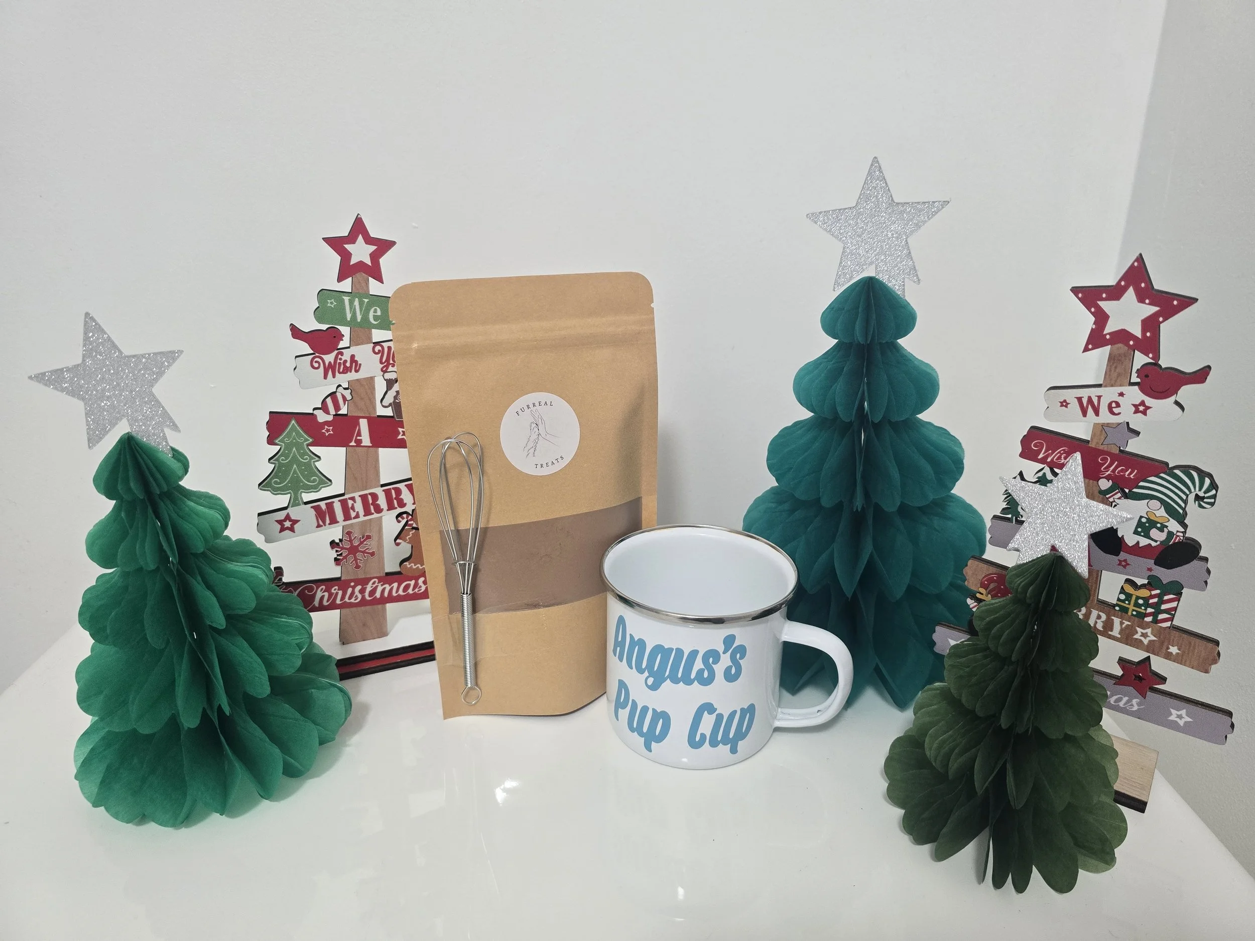 Set includes, 1 x personalised pup cup and 100g x doggy hot chocolate.